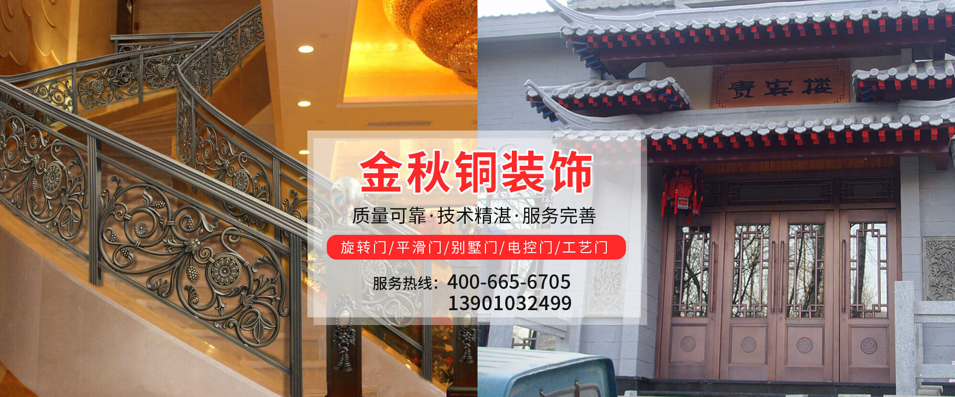 北京金秋銅裝飾材料有限公司是專業(yè)生產(chǎn)銅裝飾材料及設(shè)計(jì)、開(kāi)發(fā)、制造、施工、售后服務(wù)為一體的大型綜合企業(yè)。可承接建筑銅裝飾工程及五星級(jí)酒店、別墅、博物館、樓樘管所等高檔銅裝飾項(xiàng)目;生產(chǎn)各種規(guī)格的旋轉(zhuǎn)門、平滑門、別墅門、電控門、工藝門、旋轉(zhuǎn)護(hù)欄、屋頂銅飾防水瓦、浮雕壁畫(huà)......